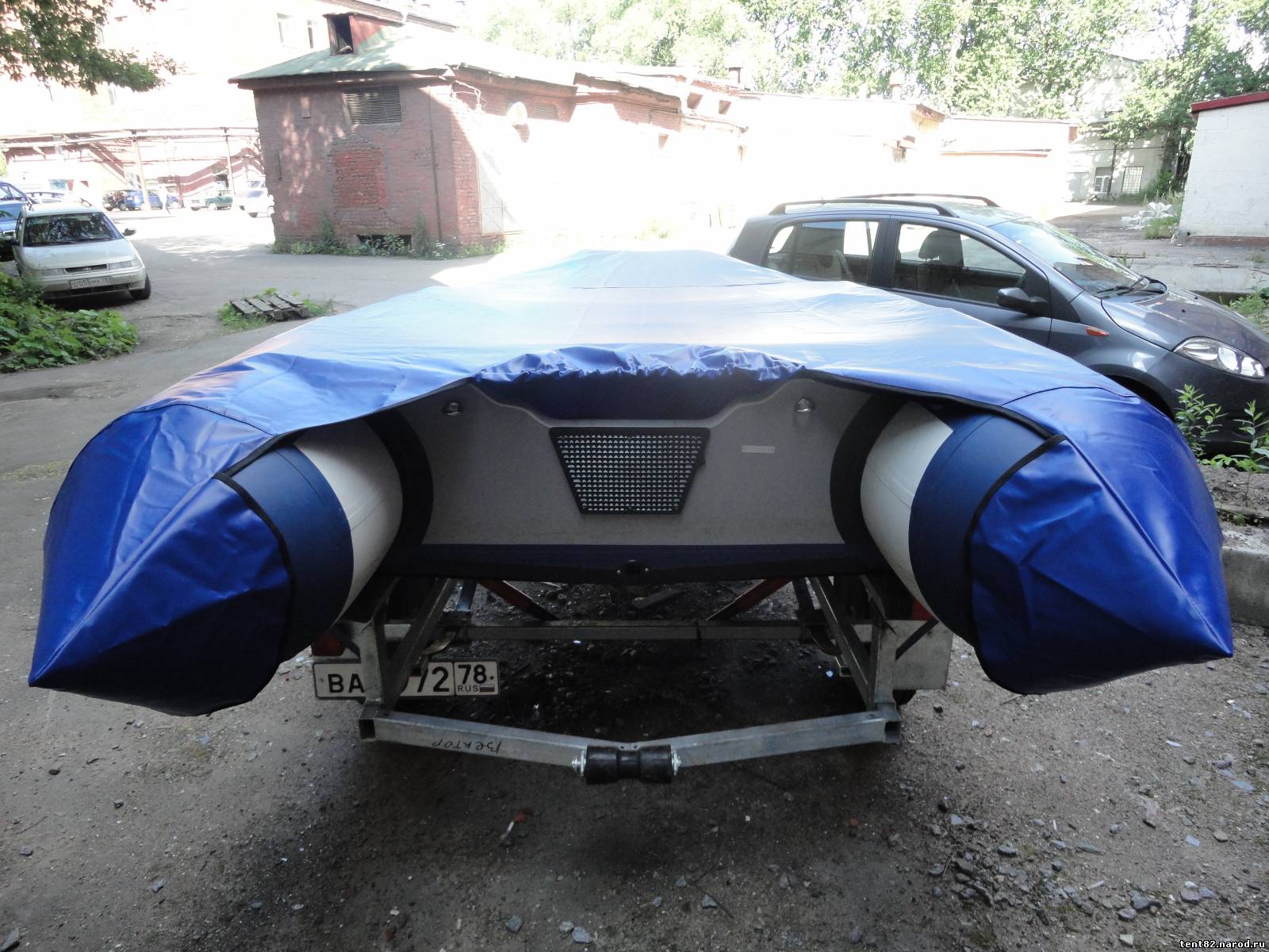 Тент транспортировочный выполнен из непромокаемой легкой ткани (разные расцветки). Тент устанавливается на лодки длиной 390 см. Назначение тента: хранение лодки на стоянках, транспортировка. Тент для хранения упаковывается в специальный чехол. При необходимости тент можно легко поддавать стирке или чистке. После установки на лодку тент полностью повторяет размеры и форму судна, поэтому подбирается точно по размерам.